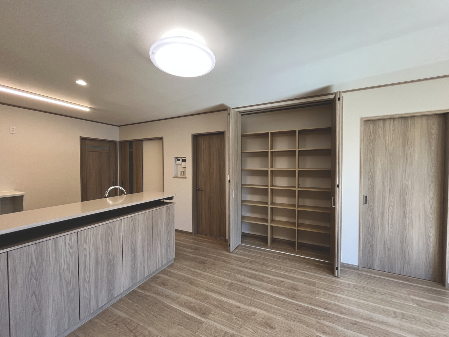 家族が集うLDKを起点に、パントリーやランドリールームへスムーズに繋がる間取りです。